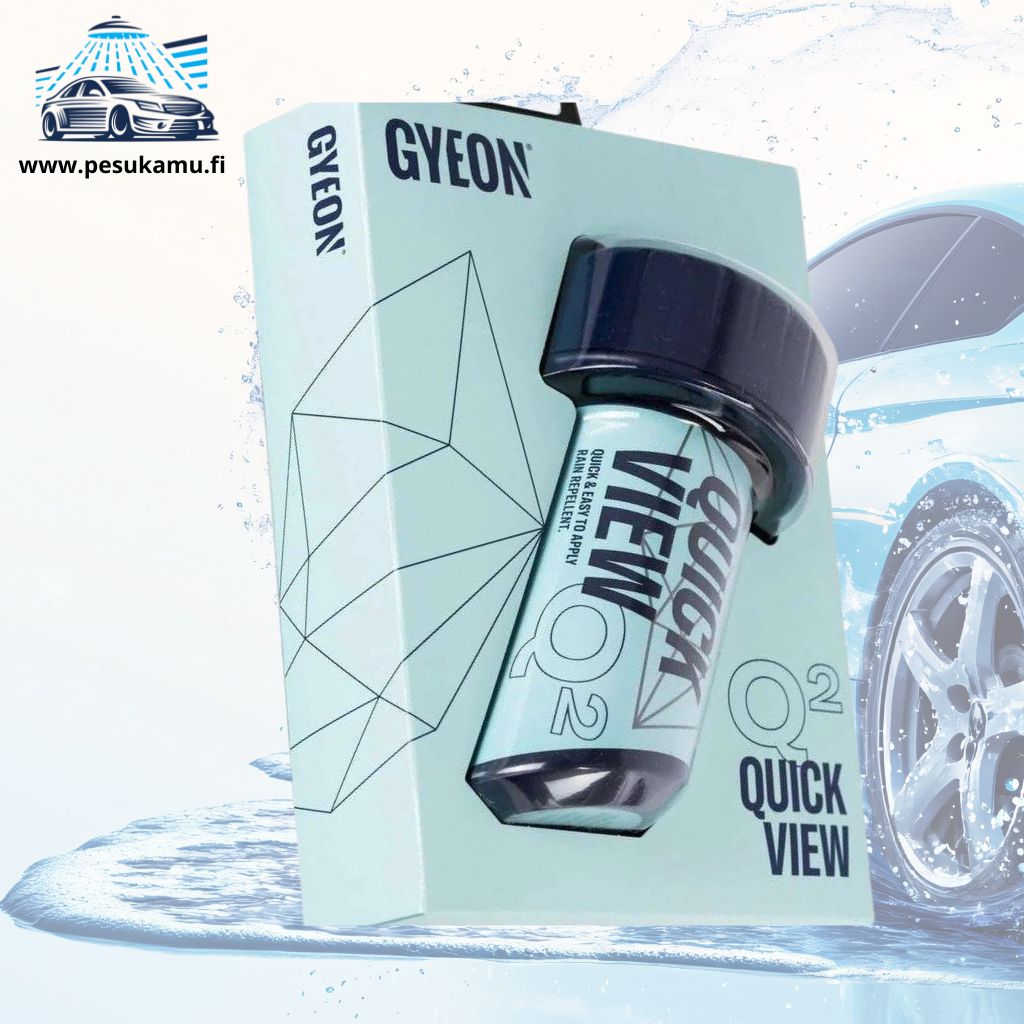 GYEON Q² QuickView on helppokäyttöinen lasipinnoite, joka tarjoaa auton laseille pitkän keston suojan ja parantaa näkyvyyttä kaikissa sääolosuhteissa. Tuote muodostaa vettä hylkivän, liukkaan pinnan, joka estää roskien, veden ja lian tarttumisen lasiin. QuickView tekee tuulilasin ja muiden lasipintojen puhdistamisesta nopeaa ja vähentää raitojen muodostumista.