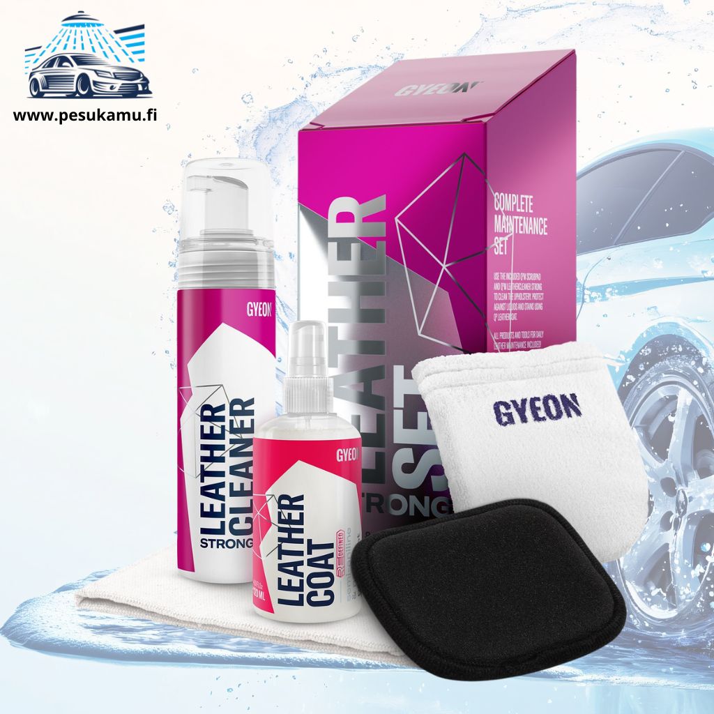 GYEON LeatherSet Strong tarjoaa kokonaisvaltaisen ratkaisun auton nahkapintojen puhdistukseen, hoitoon ja suojaamiseen, varmistaen pitkään kestävän kauniin ja hyvin hoidetun pinnan.