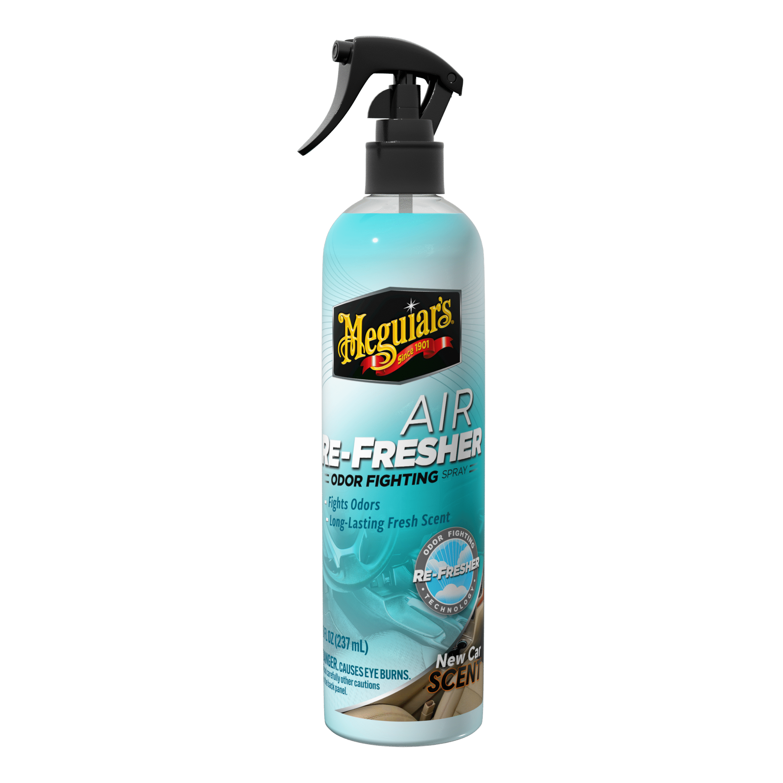 Meguiar’s Trigger New Car Air Refresher on helppokäyttöinen autonsisäilman raikastaja, joka tuo uuden auton tuoksun hetkessä takaisin. Sumutin neutraloi epämiellyttäviä hajuja ja jättää raikkaan, miellyttävän tuoksun matkustamoon ilman voimakasta kemikaalista hajua.